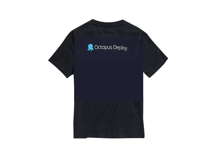 Our classic blue octopus on the front, and our company name on the back.